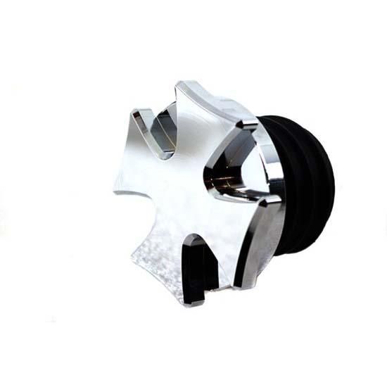 Iron cross gas cap is the bung type with vent and features a chrome finish.