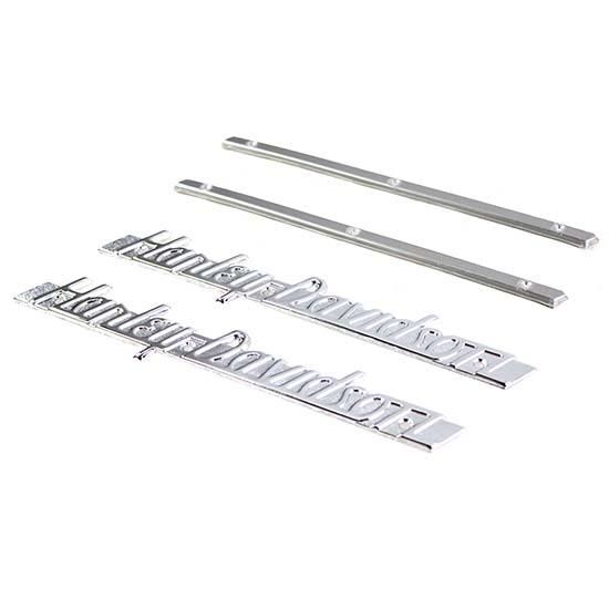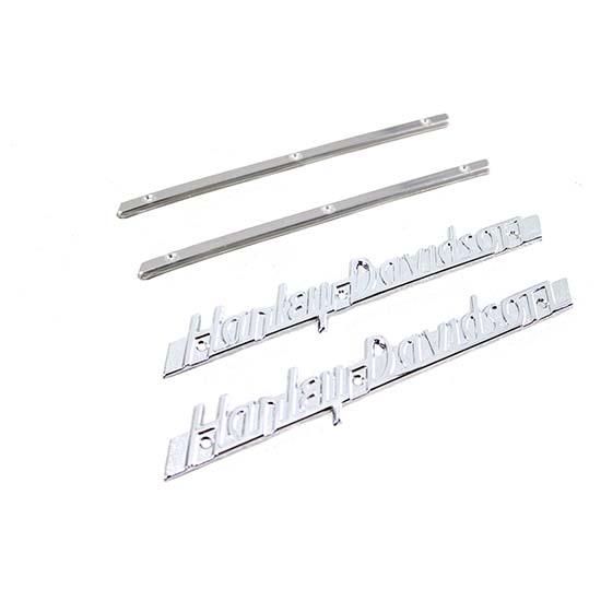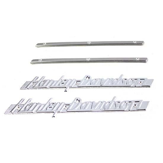 Gas tank emblem kit includes chrome emblems, weld on mount strips and screws.