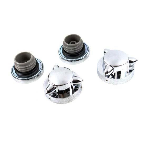 Krommet gas cap set includes a vented and non-vented bung style gas caps, with spiked gas cap covers.