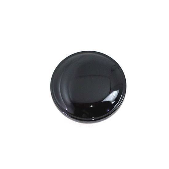 Black cap is made of steel and features a low pressure relief vent recessed in the cap to clear the filler neck vent tube on 1985 and later tanks for the right side.