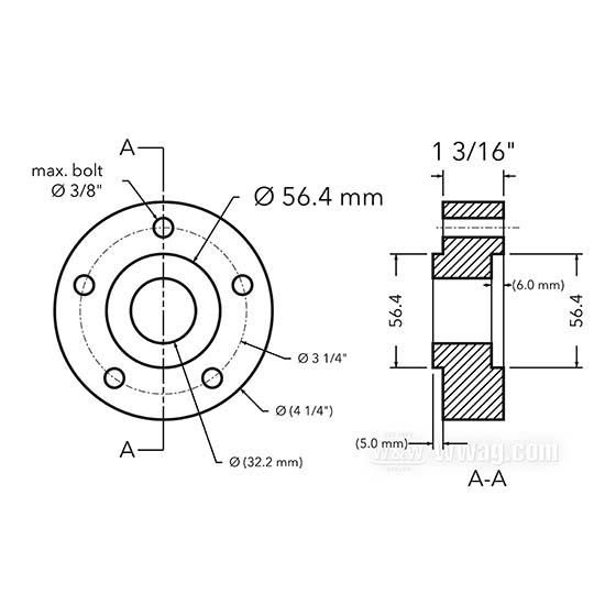 max. O of mounting bolts: 3/8"