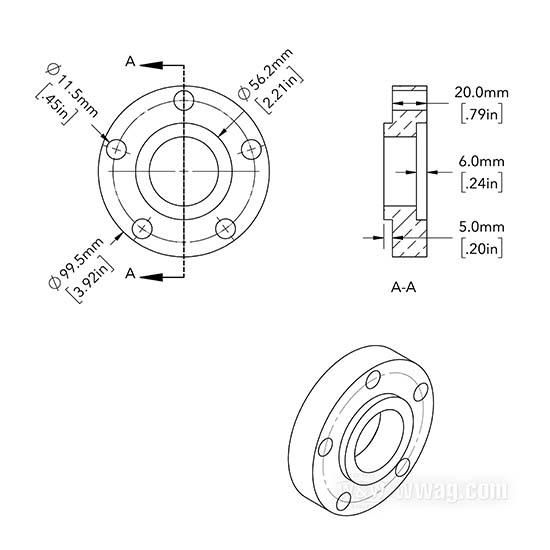 O centering collar: 56 mm