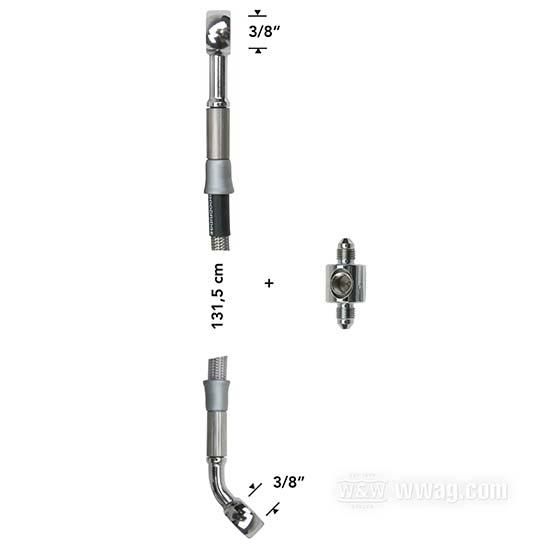 stainless steel / PTFE liner, braided clear coat, banjo 3/8" 0 banjo 3/8" 45, with T connector for brake-light switch