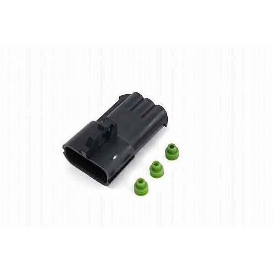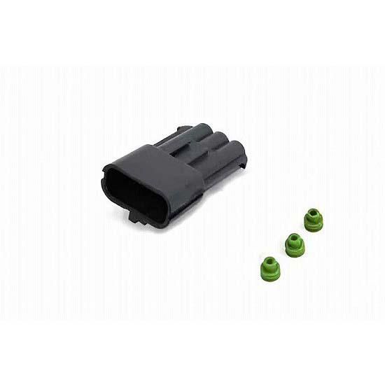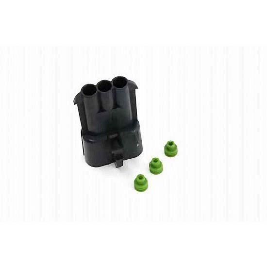 Delphi-Packard Weatherpack 3 wire male connector with wire seals.