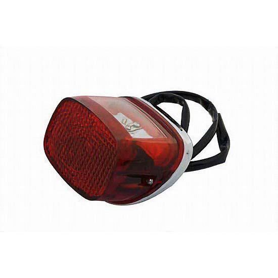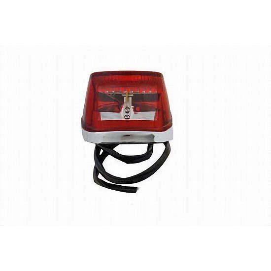 Red LED tail lamp includes chrome base, red lens, wire and LED.
