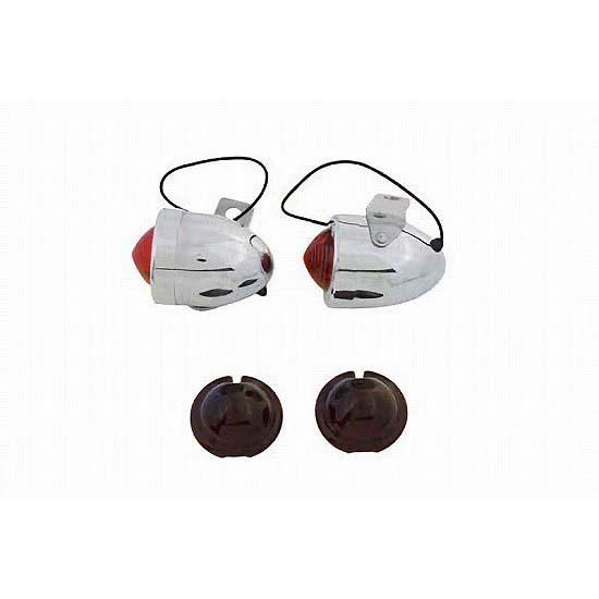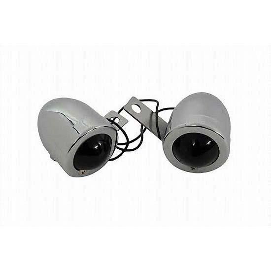 Chrome lamp set features 1-3/4" round lamps with brackets attached and red glass lens.