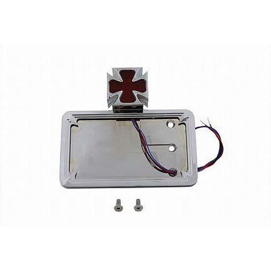 Chrome billet Maltese LED lamp with horizontal side mount license plate frame.