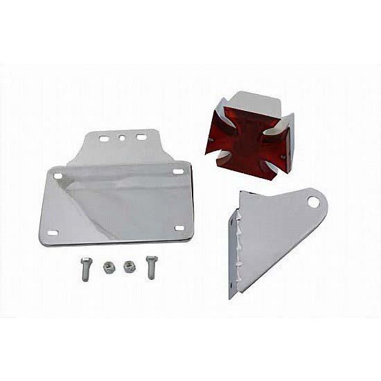 Chrome maltese style tail lamp with side mount horizontal license plate, lamp with bulb and bracket.