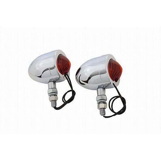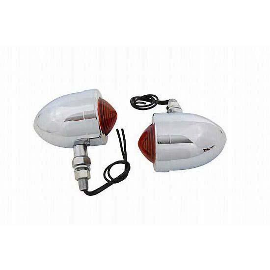 Chrome double filament bullet lamp set with 12 volt 23/8 watt clear bulb with red lens with chrome stem.