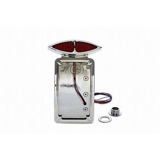 Chrome Katz Eyez LED lamp with side mount curved vertical thorn plate frame, bracket and 2" center to center mount holes to fit cat eye or similar lamps.