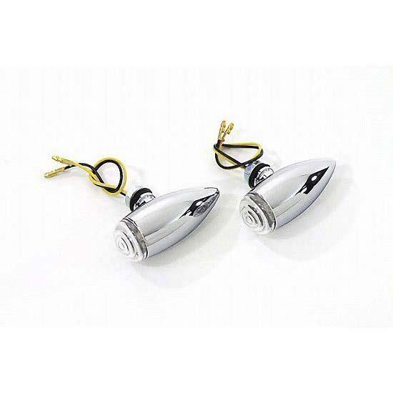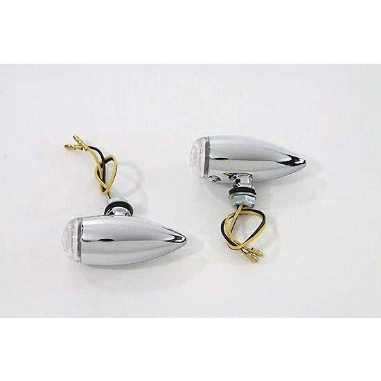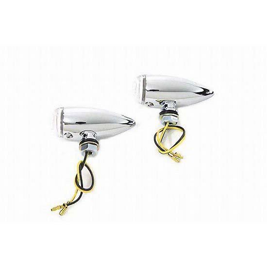 Chrome LED mini bullet lamp set with amber LEDs and clear lenses with single wire and a 3/8" stem for mounting.