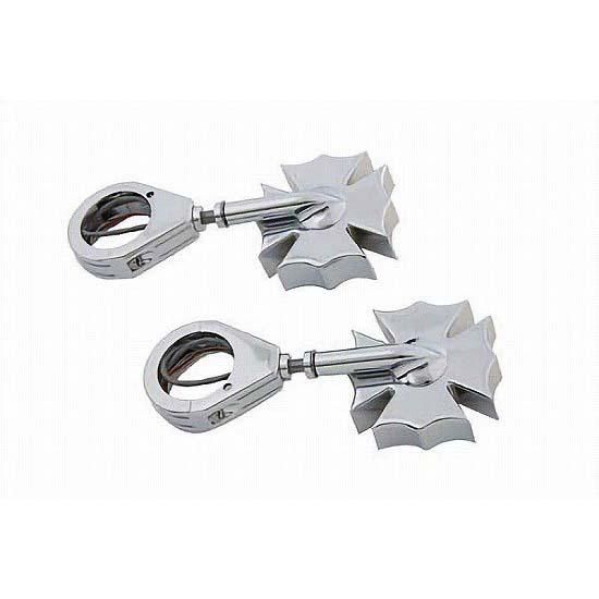 Chrome clear lens fireman turn signal set with 41mm clamp and amber LED.