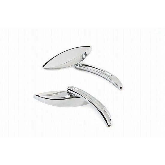 Chrome snake eye mirror set features curved billet stems. Set includes left and right with screws on the back side to set the mirrors.