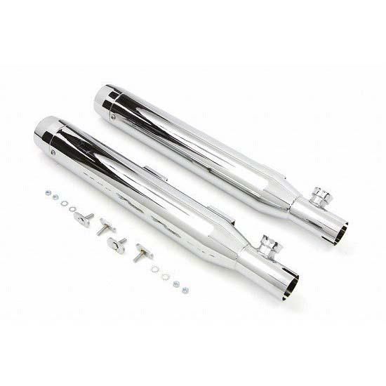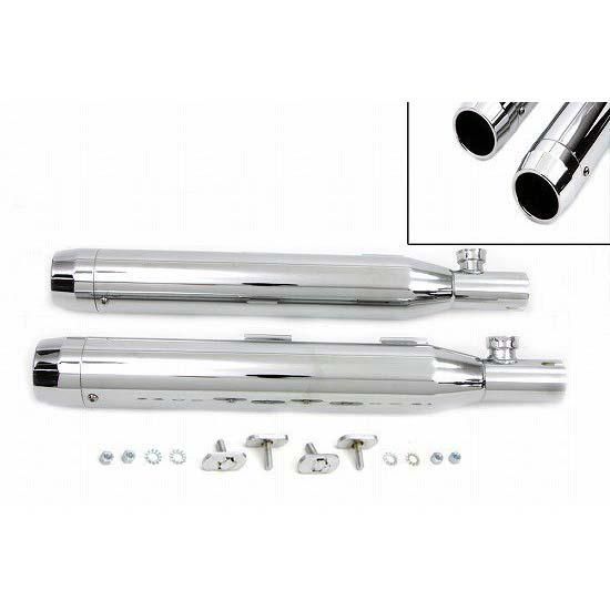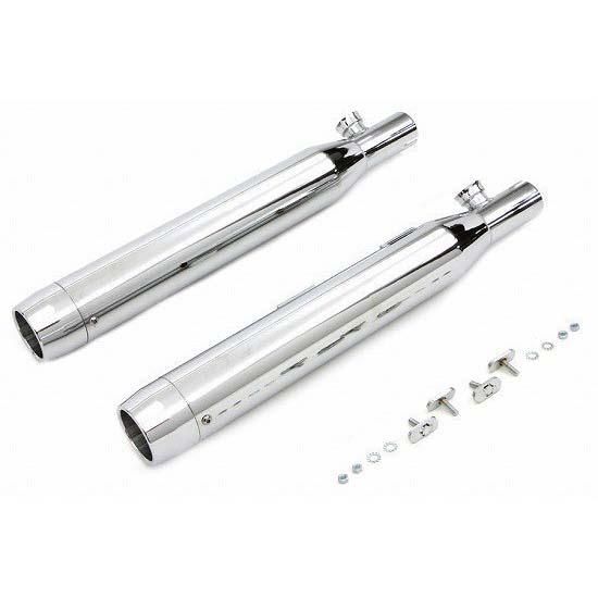 Chrome slip on muffler set features chrome end tips.