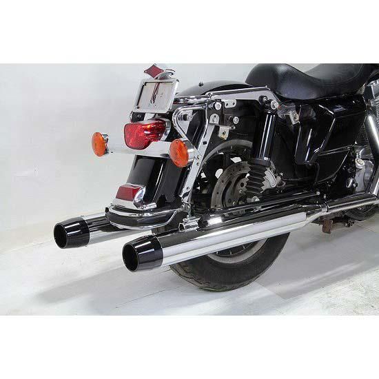 Chrome muffler set has a 4" outer diameter with black medium length tapered style end tips.