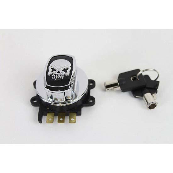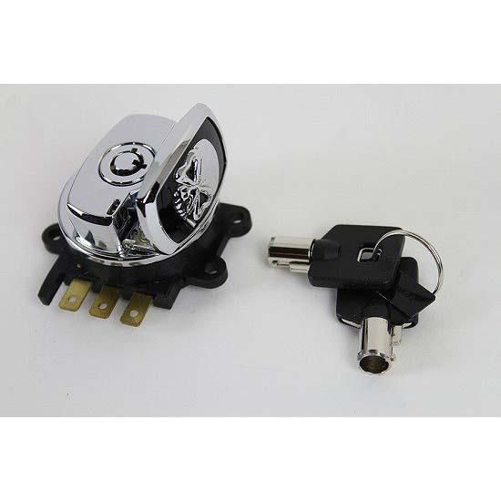 Hinge ignition switch for electronic ignition. Hinge is located on the side of the ignition switch, featuring a skull cap style.