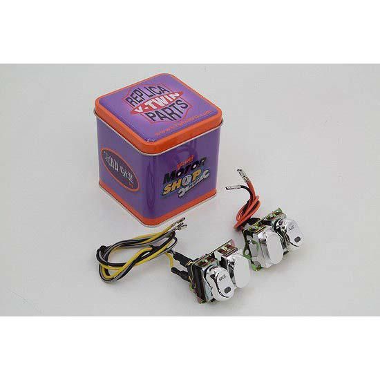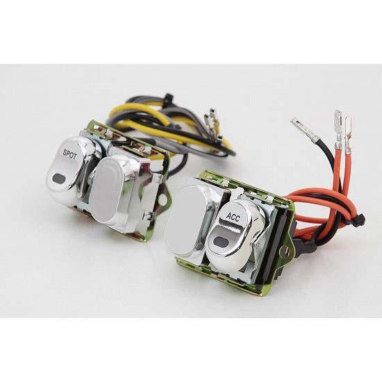 Chrome fairing handlebar rocker switch with LED indicator. Kit features a four switch configuration which includes only the spotlamp and accessory switch.