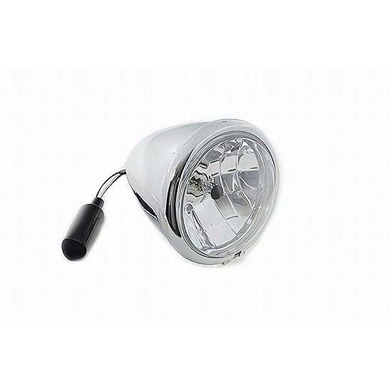 Chrome plated stretched 5-3/4" bottom mount headlamp features a 12 volt diamond cut composite beam. Includes mounting block.